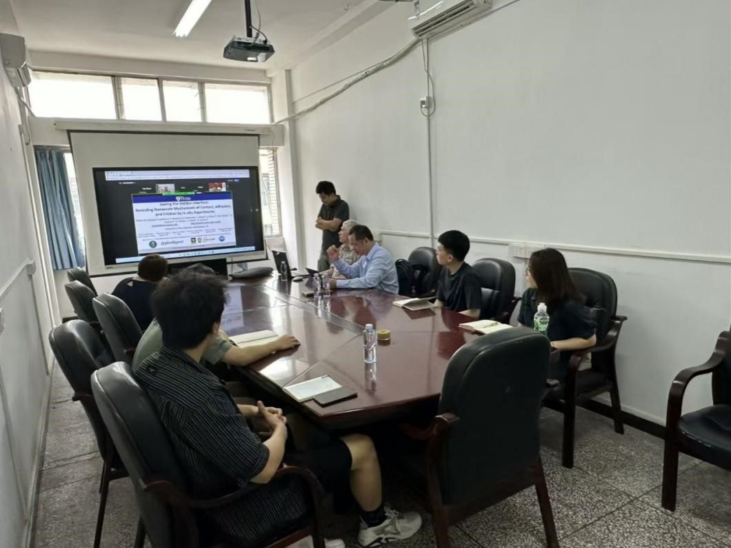 Robert Carpick教授的报告聚焦在原位实验方法揭示的新科学,这些方法促进了对摩擦学过程基于物理见解的发展。他研究发现,硅纳米微凸体之间的粘附呈现出强烈的、可逆的、滑动历史依赖性的特性,这归因于剪切诱导的化学吸附质的移除,随后在接触表面分离后迅速重新吸附。