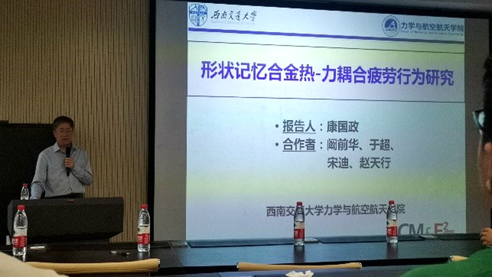 对四位专家的到访表示热烈欢迎,并对报告人做了简要介绍。戴兰宏教授是国家杰出青年基金获得者、新世纪百千万人才工程国家级人选、入选中科院百人计划,享受国务院政府特殊津贴。曾任力学所学位、学术委员会主任,现任中国力学学会副理事长、《力学进展》主编、中国科协爆炸力学首席传播专家。刘彬教授现为国际期刊《Forces in Mechanics》主编,《力学学报》副主编及《International Journal of Plasticity》和《Journal of Computational and Theoretical Nanoscience》编委,曾获国家杰出青年科学基金,国家自然科学二等奖,中国力学学会自然科学一等奖,中国力学学会青年科技奖,教育部新世纪人才计划,德国洪堡奖学金。康国政教授现任西南交通大学副校长,是国家杰出青年基金获得者(2010),教育部“长江学者”特聘教授(2015-2020),国家级领军人才(2015),德国“洪堡”学者(2009)。2010年获教育部自然科学二等奖1项(排名1/8),2012年入选享受国务院特殊政府津贴专家。汪越胜教授2000年获国家杰出青年科学基金,2007年受聘长江学者特聘教授,2010年入选新世纪百千万人才工程国家级人选。现担任国家自然科学基金委创新研究群体负责人、《固体力学学报》英文版副主编、中国力学学会监事和固体力学专委会副主任、中国材料研究会超材料分会常务理事、北京力学会理事长、教育部高等五楼自拍