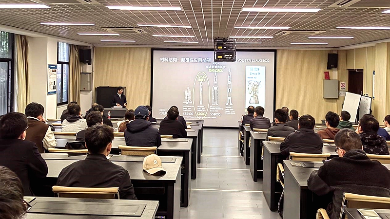 郭万林院士的报告以数字孪生技术的发展为开端,由浅入深地向在场师生介绍了飞机结构疲劳以及智能检测等前沿领域内容。据介绍,智能化技术的发展主要依赖于光纤通信技术以及互联网速度两个核心技术的快速发展。对于光纤通信技术,低损耗光纤通信发展到至今的5G技术速度非常迅速,光纤也不断地向应用化转变,例如光纤应变传感器以及光纤温度传感器等的出现均验证了这点,也正是因为光纤通信的快速发展,互联网速度才能从以前的同轴电缆速度40~565Mbps发展到如今的10Tbps。这两方面技术的不断突破也为空天地海一体化网络--北斗系统以及Starlink系统的建成提供了坚实的基础。随后郭万林院士介绍了数字化孪生技术的发展以及飞机耐久可靠性问题的重要性,并以Spacex公司近年来对可回收式飞行器技术的发展为例,介绍了现有理论是落后于实际应用的,Spacex公司的大量实验是建立在其雄厚的经费基础上,对于可以大大缩减经费支出的数字孪生等可预测设计的技术而言,其技术的可靠性以及成熟度仍需提高,但技术发展成熟后对科学技术的发展也有着巨大影响。郭万林院士也对近年来其团队在飞机结构疲劳断裂方面所做的研究做了简要介绍,并强调了数字科学技术与理论模型结合对于科学技术进步的巨大提升前景。报告最后郭万林院士对未来科技的发展作了展望,并简要介绍了面向未来能源、生态和智能挑战的基本科学问题和水伏学基本概念和研究进展。
