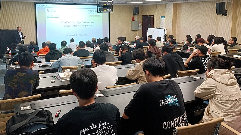 ,于下午15:00在A区理科楼010室出席由工程学部主办的工程科学前沿讲坛,并作题为“Compesites Innovation Activities in Bristol and High Performance Pesudo-Ductile Composites”的学术报告。报告由五楼自拍