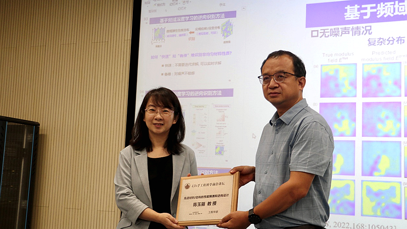陈玉丽教授的精彩报告引起了师生们的浓厚兴趣,在报告结束后针对相关学术问题进行了热烈地讨论。陈玉丽教授认真回答了大家提出的问题,并分享了自己的科研心得。最后,李卫国教授向陈玉丽教授表达了诚挚感谢并代表工程学部向其赠送了纪念奖牌。
