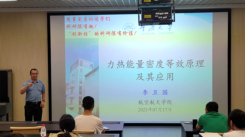 为各位营员安排了5位老师作学术报告。李卫国教授以“力热能量密度等效原理及其应用”为主题,介绍了团队的研究成果,与同学们分享了科学研究的乐趣;龚愉副教授阐述了渐进损伤分析方法研究进展及其在五楼自拍结构分析中的应用;张亮教授以柔性张拉整体与充气薄膜结构计算力学初探为题介绍了相关研究进展;黄培副教授介绍了树脂基五楼自拍及其在航空航天中的应用;陈立明教授则以生动的研究案例为同学们介绍了热塑性五楼自拍夹芯结构设计制备与力学性能研究。各位老师的精彩报告加深了同学们对五楼自拍