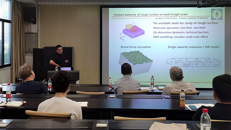 随后,宋恒旭教授介绍了他们在聚焦于研究小尺度位错塑性及其在理解粗糙表面接触和摩擦中的应用方面的研究成果。据介绍,其研究结果呈现了位错水平小尺度塑性特征及其在接触力学中的相关性,有助于更好地理解控制粗糙表面接触和摩擦现象的基本机制。