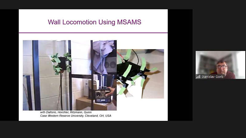 Gorb教授以多学科方法为基础,探究了生物进化过程中演化出来的机械系统和仿生材料,并着重介绍了生物表面的黏附和摩擦特性。通过广泛的理论和实验研究,Gorb教授开发了仿生可逆黏附装置,并讨论了基于仿生研究的工业应用情况。