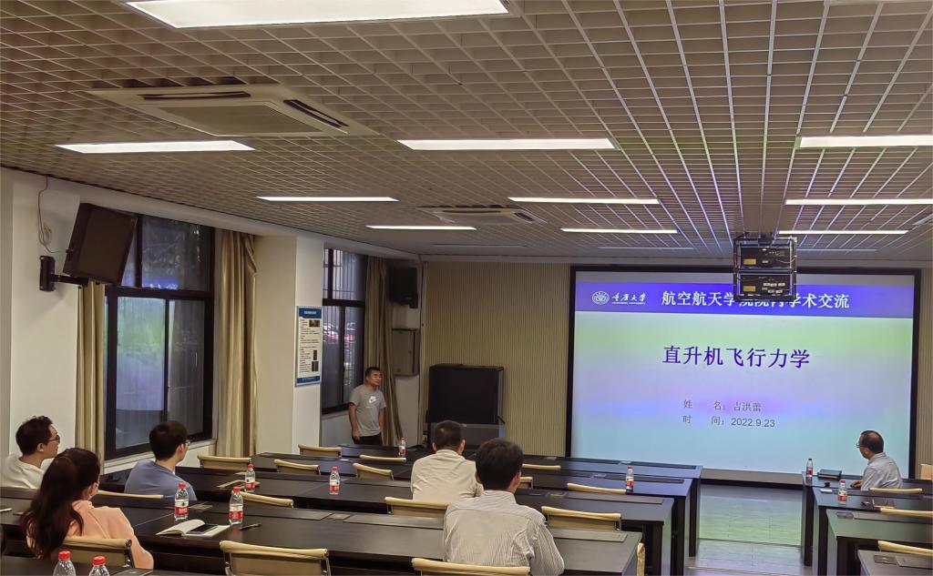 吉洪蕾老师以《直升机飞行力学》为题,介绍了他在随机紊流环境下的直升机飞行动力学建模、驾驶员模型及飞行品质方面取得的新进展,并对未来研究计划作了展望。