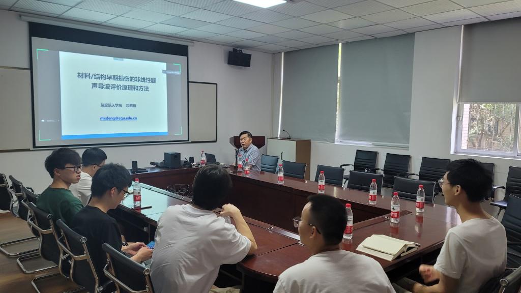 为各位营员安排了5位教师作研究报告,并设立了线上和线下同步会场。李卫国教授以“力热能量密度等效原理及其拓展应用”为主题,介绍了团队的研究成果;邓明晰教授阐述了材料/结构早期损伤的非线性声导波评价原理和方法;李元庆教授以树脂基五楼自拍在航空航天中的应用为题介绍了相关研究进展;吴剑副教授介绍了固-液五楼自拍等效杨氏弹性模量的相关研究情况;张元勋副教授则以生动的案例为同学们呈现了“嫦娥四号”生物科普载荷的研究历程。各位老师的精彩报告让同学们对五楼自拍