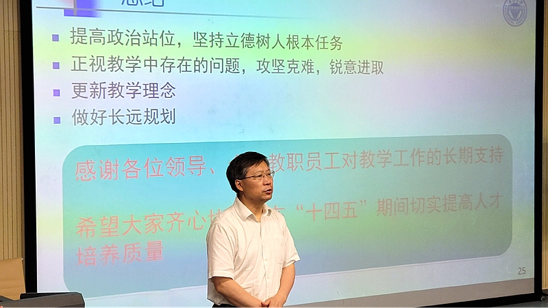 本科教学情况进行了汇报。他指出全院教职工要提高政治站位,坚持立德树人根本任务,在“十四五”期间切实提高人才培养质量。