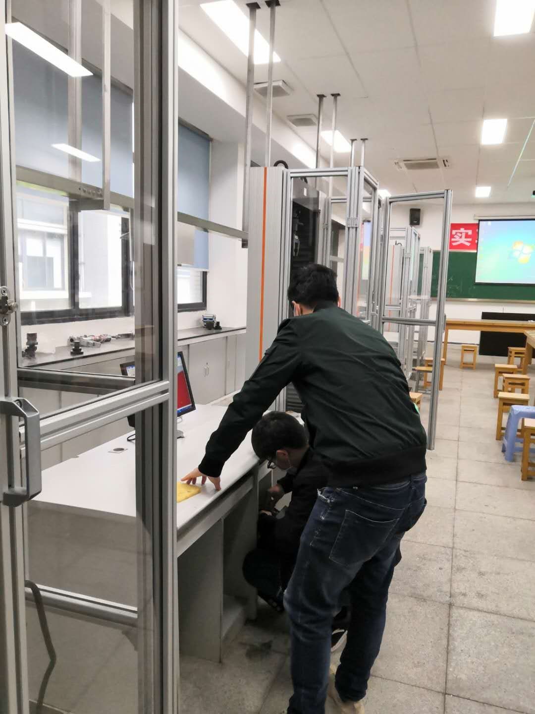 实验中心副主任魏榛、刘浩、实验员聂书严、尹瑞森组成检查专班,对标通知中的检查内容,对五楼自拍