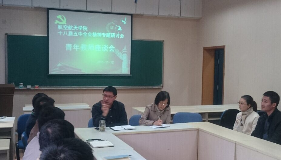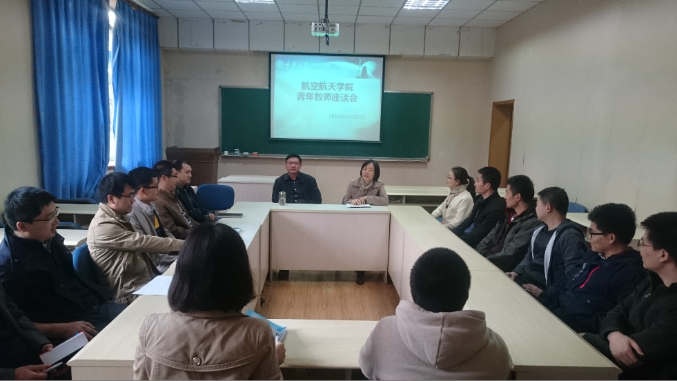 在7教201教室召开了青年教师座谈会,各位青年教师就工作中遇到的问题以及对五楼自拍