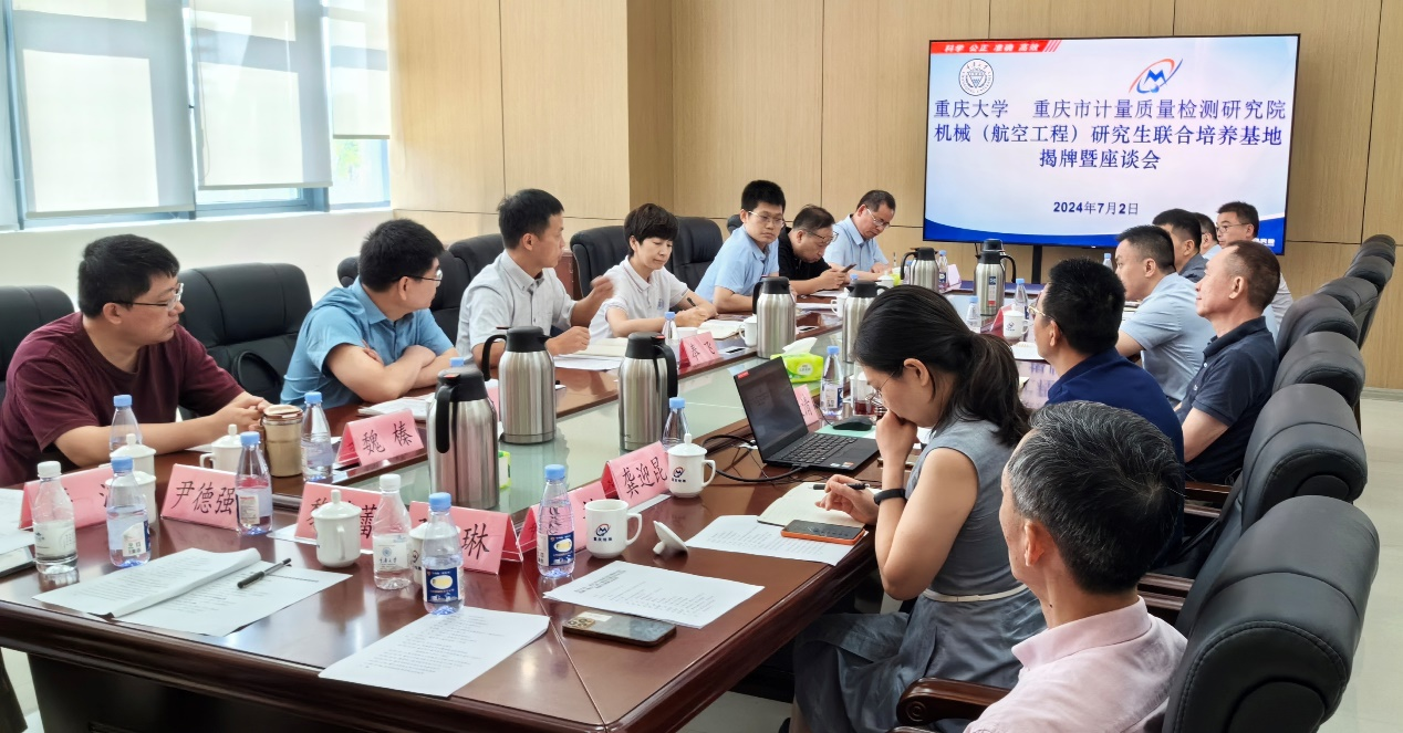 —重庆市计量质量检测研究院机械(航空工程)研究生联合培养基地揭牌仪式。重庆市计量质量检测研究院党委书记段飞、院领导丁跃清和各部门负责人出席了此次活动。