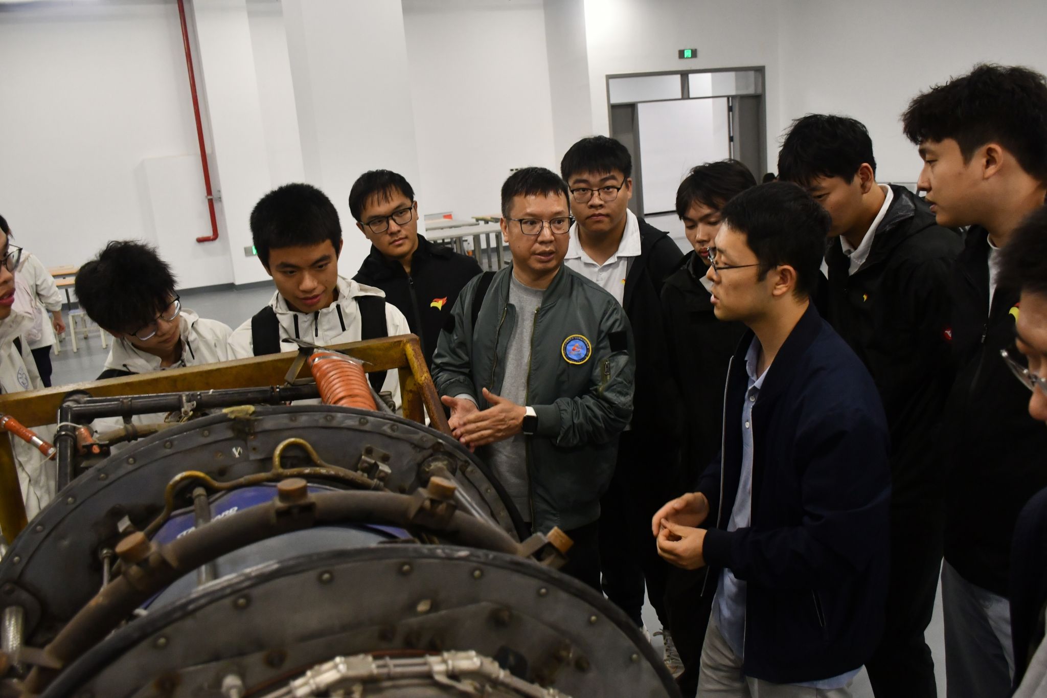 下午,中飞院航模队带领我校航模队一行乘校园巴士观光该校新建的天府校区校园,之后,一行人前往工程技术训练中心进行参观。在这里,中飞院老师详细介绍了飞机机务维修执照培训与考证的相关情况,中飞院航模协会带来精彩的室内无人机编队飞行表演,并在该校C区操场进行了航模飞行技术交流与表演。
