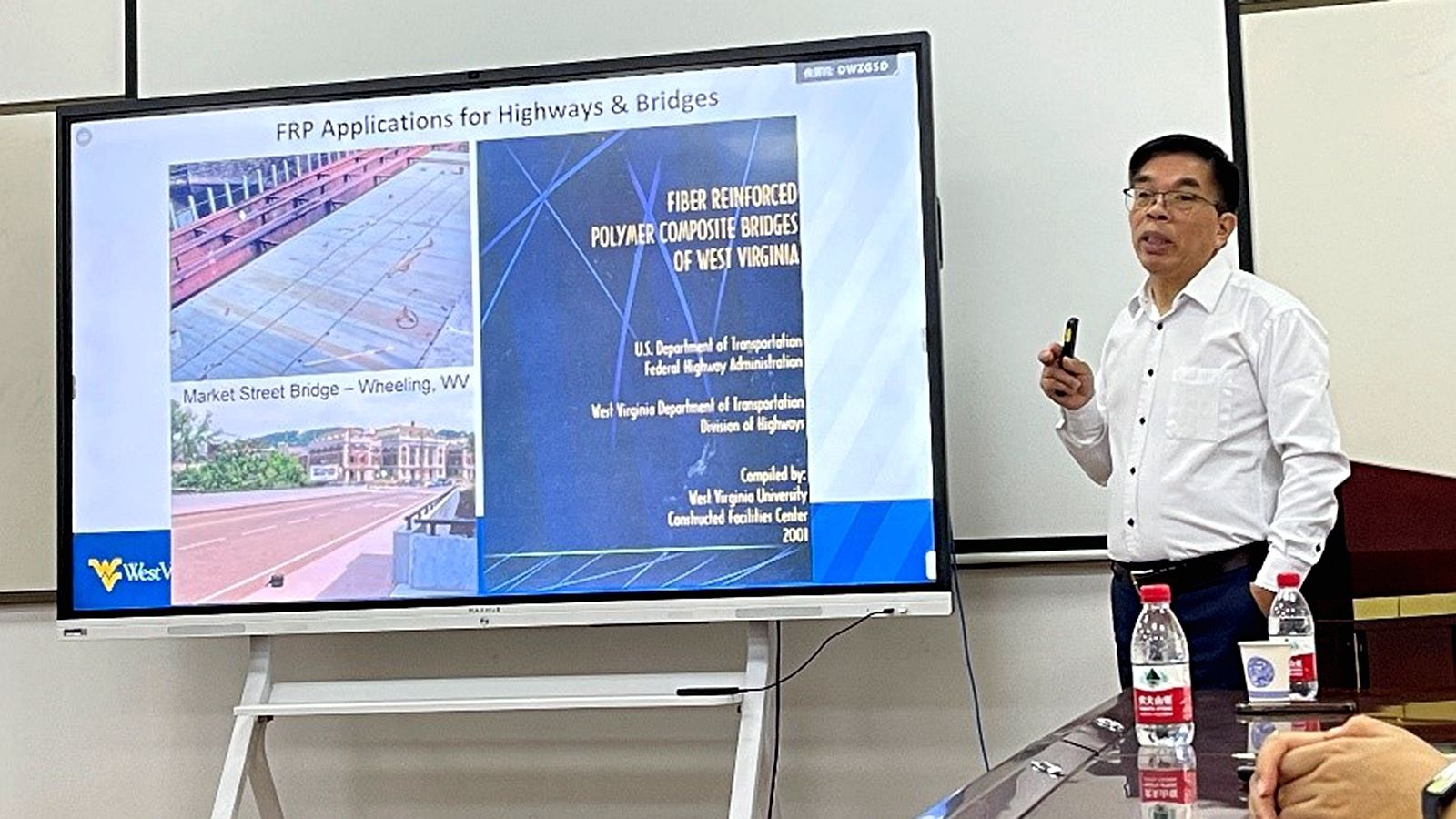 报告中,梁教授就纤维增强高分子五楼自拍的设计、制造以及在基础设施工程领域的创新应用方面展开讲解介绍,同时对比了中美两国在五楼自拍应用方面的差异。梁教授表示,中国五楼自拍相关领域研究虽然起步较晚,但近年来发展迅速,这其中离不开中国市场的巨大需求与广大科研工作者的贡献。