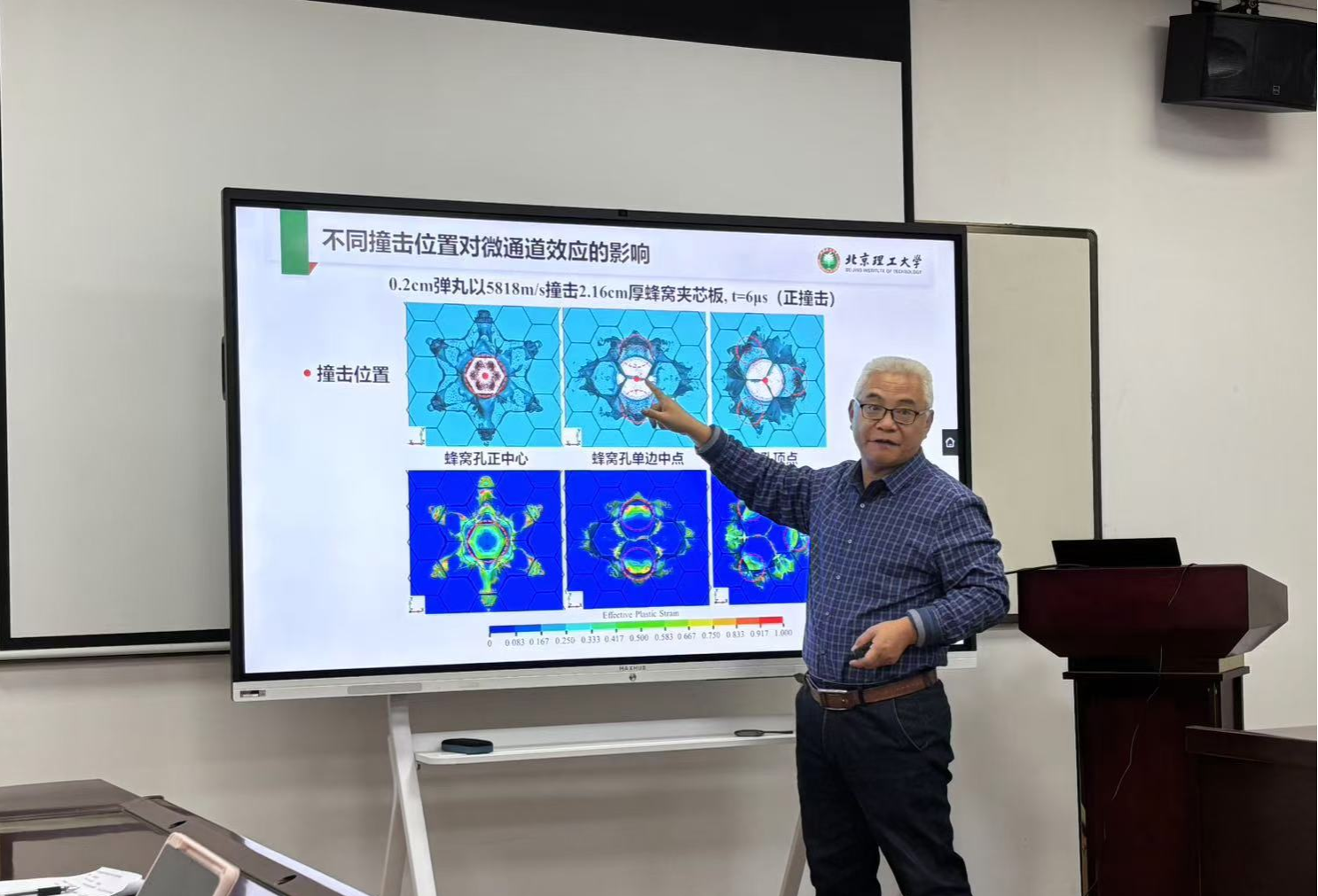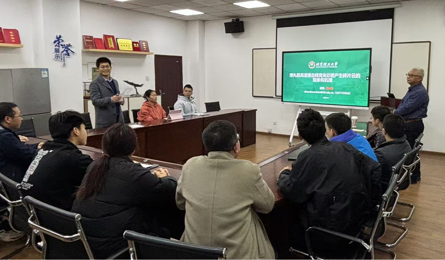 ,并于理科楼205会议室出席由工程学部主办的工程科学前沿讲坛,作了题为“弹丸超高速碰撞撞击蜂窝夹芯板产生碎片云的现象和机理”的报告。报告由五楼自拍