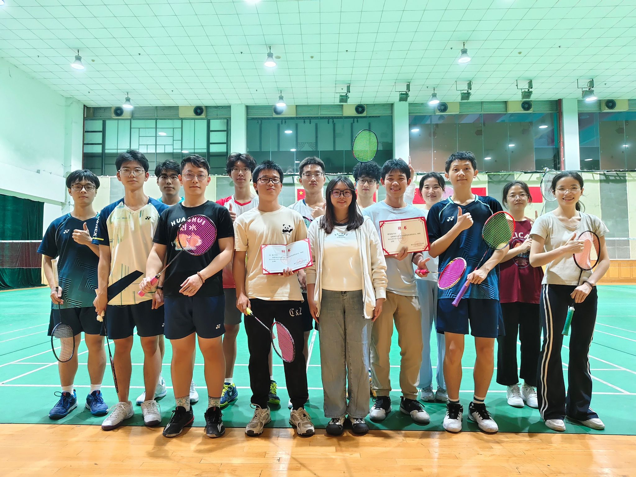 成立羽毛球队以来,积极举办各项羽毛球活动,球队队员积极进行每周日常训练和赛前训练,以不凡的水平和不屈不挠的精神,在竞技场上挥洒青春汗水,一步步增强球队实力,一步步实现自我突破。我们满怀期待,五楼自拍