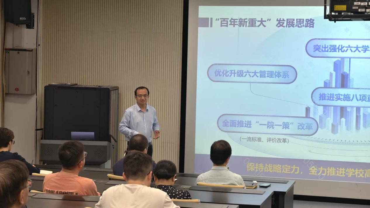 学科建设关键指标和“一院一策”规划,重点从推进高质量学科建设、加快高端科研平台建设和优化人才师资引育体系三个方面作了汇报。