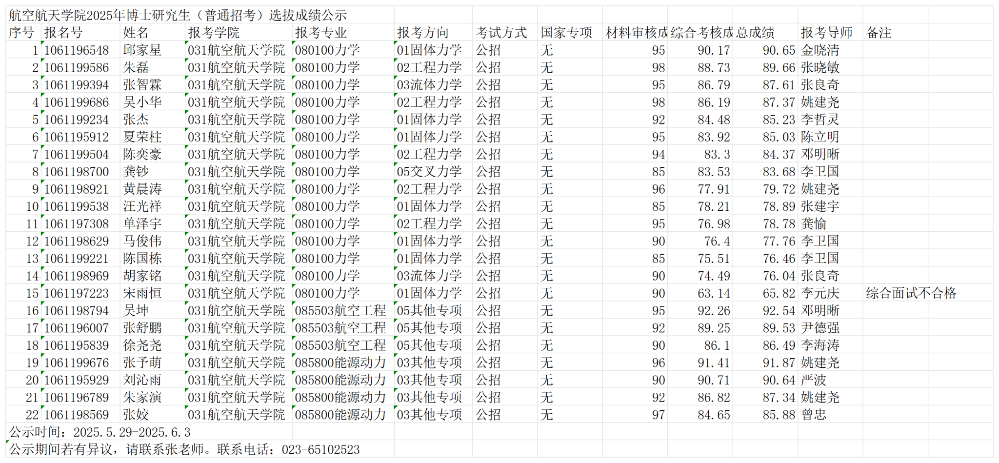 五楼自拍 2025年博士研究生(普通招考)选拔成绩公示