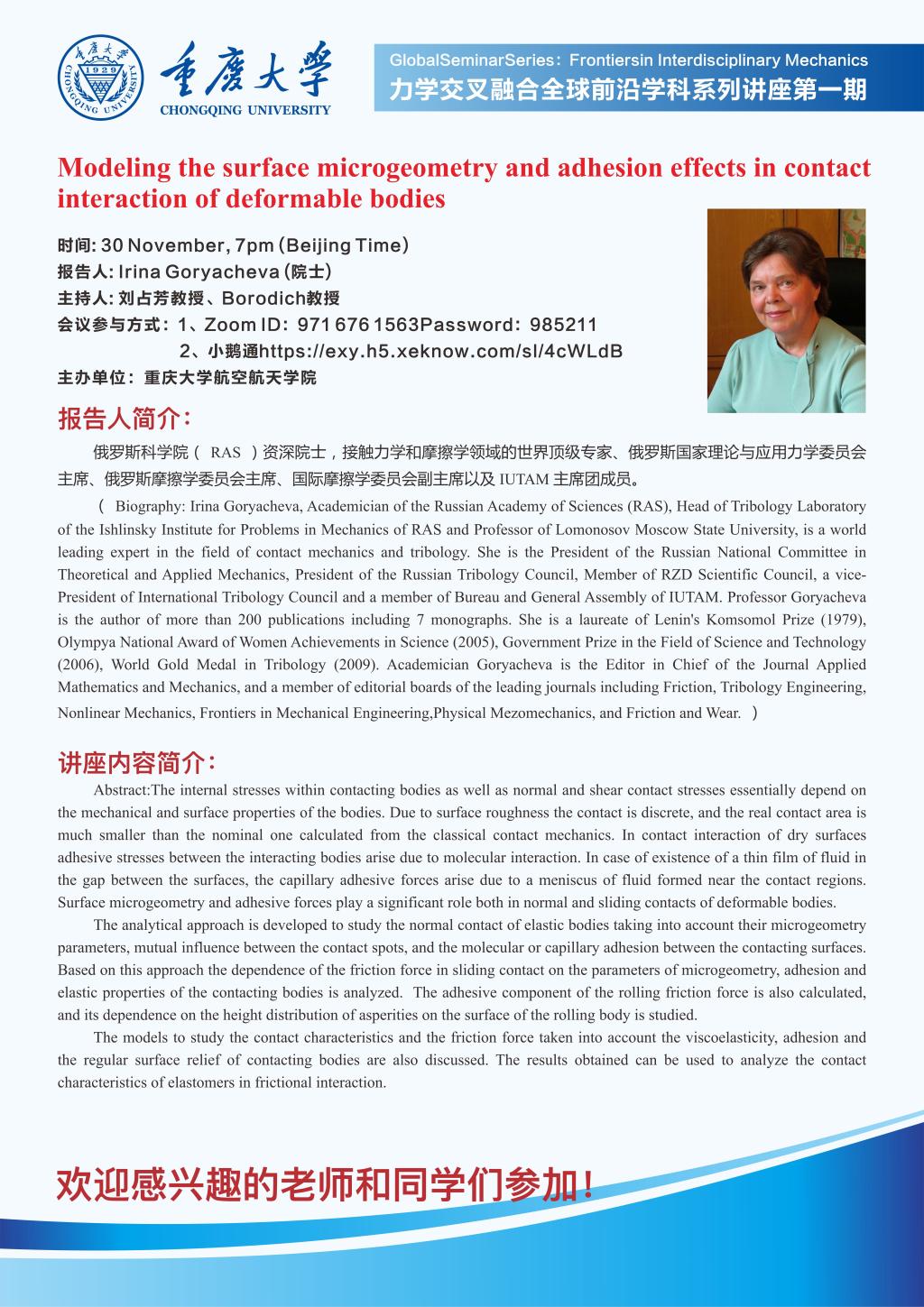 【11月30日】力学交叉融合全球前沿学科系列讲座第一期