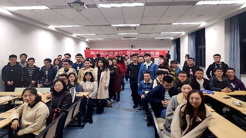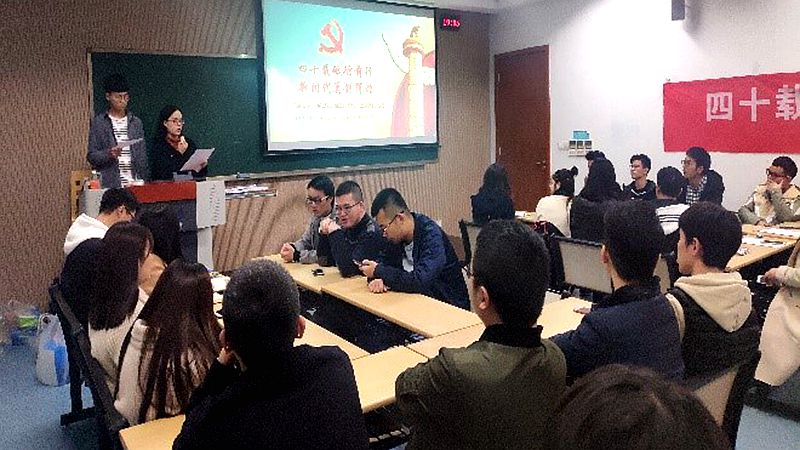 20181110日,在A8513教室,五楼自拍-91在线-国产在线 、法五楼自拍 、动力工程五楼自拍 三五楼自拍 联合举办了四十年砥砺前行,新时代再创辉煌主题党团活动。活动开始,主持人激情洋溢的开场致辞立刻带动了在场各位同学们的热情。