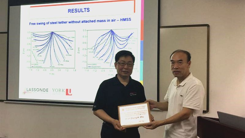 胡宁教授首先介绍了朱正宏教授的研究简历。朱正宏教授本、硕、博均毕业于上海交通大学力学专业,并获得加拿大滑铁卢大学机器人控制专业硕士学位及加拿大多伦多大学机械工程专业博士学位。目前任加拿大约克大学机械工程五楼自拍 的department chair教授。他同时是加拿大工程研究院院士、美国机械工程师协会(ASMEFellow、中国机械工程协会(CSMEFellow、美国飞机工业协会(AIAAassociate Fellow。作为负责人主持了多项加拿大国家科学工程研究基金(NSERC)、加拿大航天署(Canadian Space Agency)等项目20余项。目前,他作为负责人正在主持由加拿大航天署资助的“立方星电动系绳离轨空间演示”项目,计划于2018年底发射两颗由100米长的电动系绳连接的立方星,在空间演示电动系绳离轨技术。