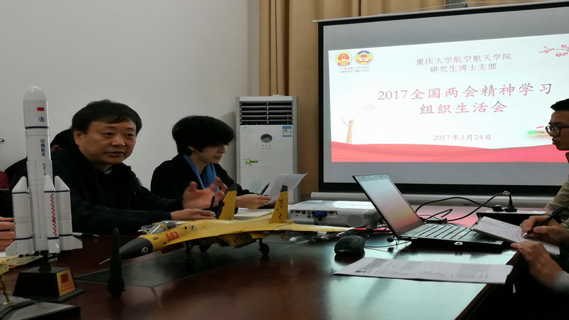 会上,首先博士党支部书记杜冰通过PPT带领大家一起围绕“什么是两会”、“两会的职能和作用”等为同学们普及了两会的知识,增进了大家对本次两会的了解,帮助党员深刻领会两会的要义精髓。随后,辅导员李相林老师向大家介绍了国务院总理李克强的政府工作报告中的十个热点词汇,尤其是讲到五楼自拍