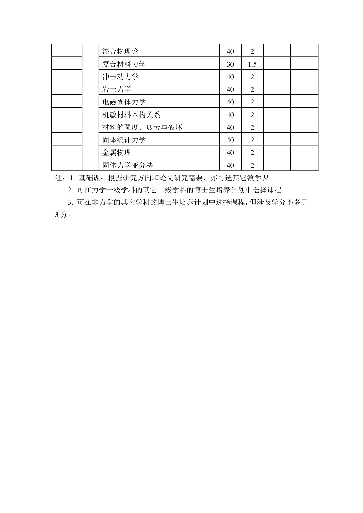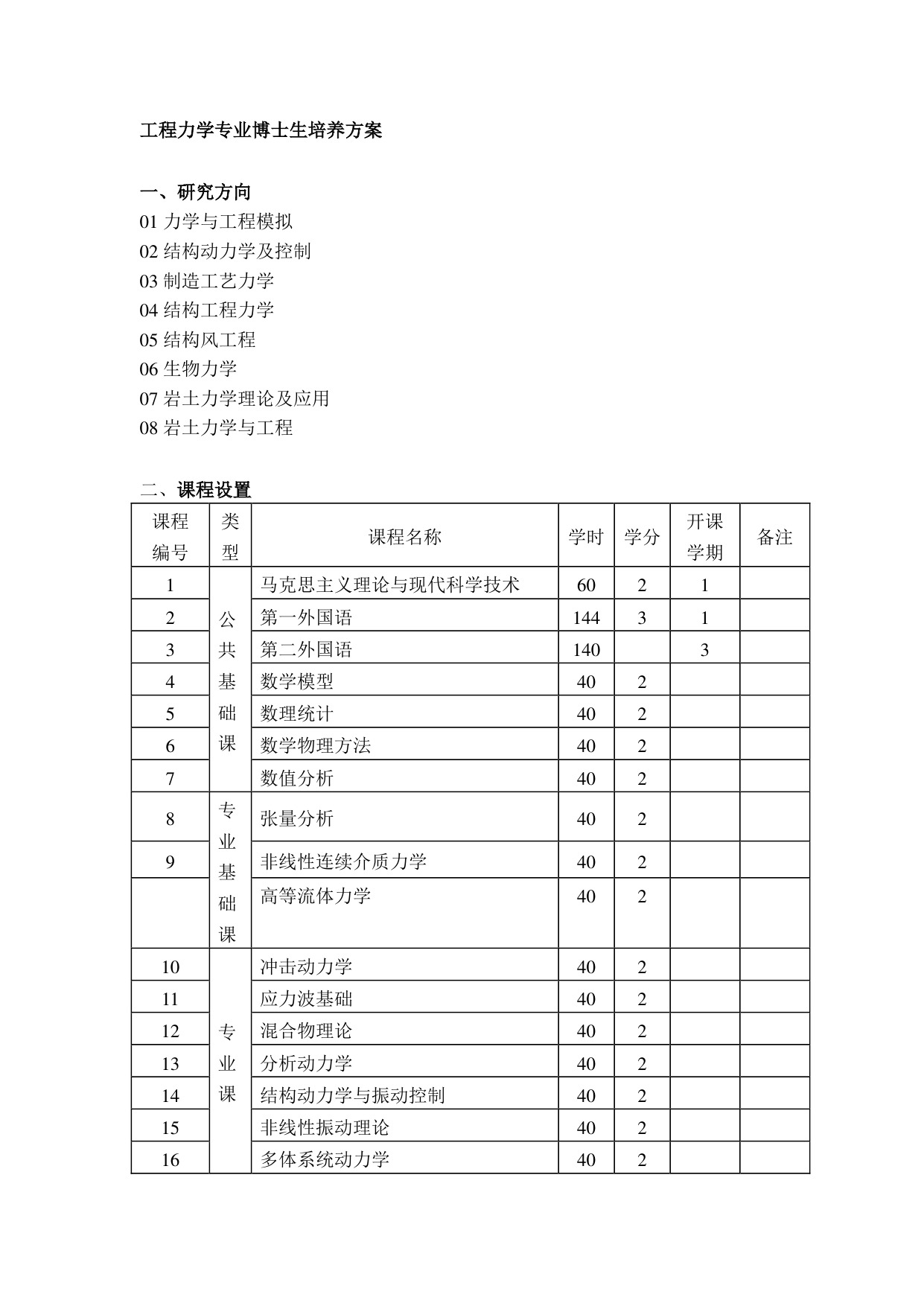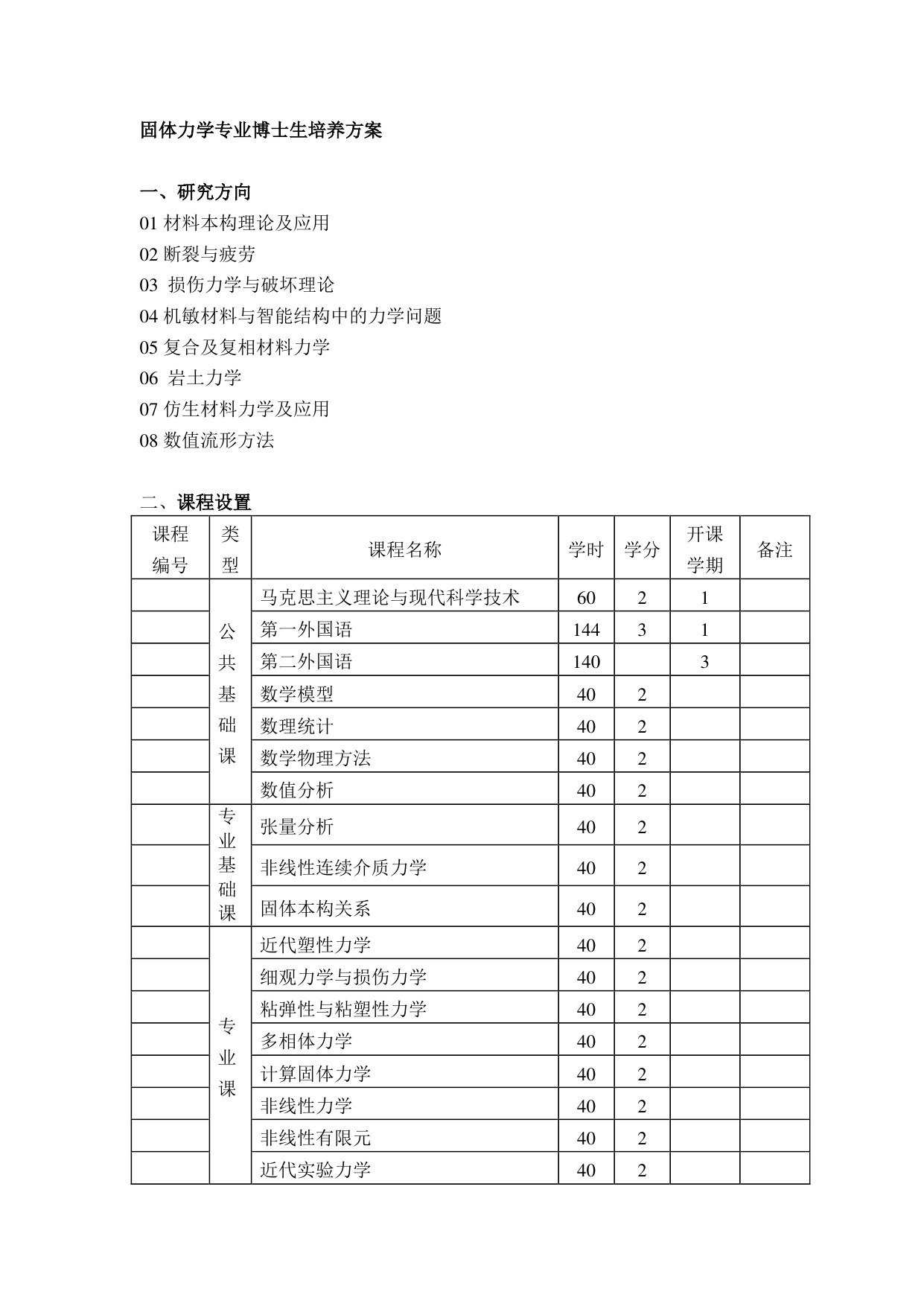 力学博士研究生培养方案