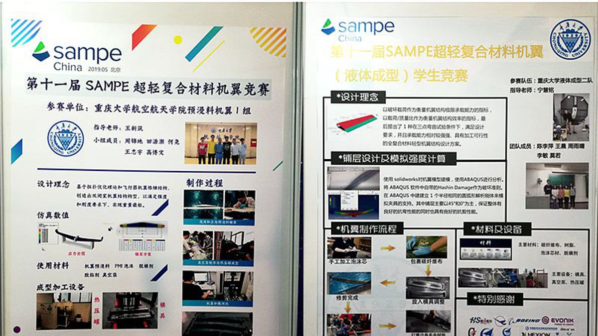 SAMPE(The Society for the Advancement of Material and Process Engineering)是一家以航空航天五楼自拍研发起家、以先进五楼自拍为主要关注点的国际性专业学会组织。由中国航空学会、SAMPE中国大陆总会共同主办,美国波音公司赞助支持的第十一届SAMPE超轻五楼自拍桥梁/机翼学生竞赛于5月6 -8日在北京中国国际展览中心举行。大赛分为机翼预浸料成型、机翼液体成型、碳纤维桥梁和天然纤维桥梁四大类,旨在普及先进五楼自拍结构设计及制造工艺知识,提升在校学生设计、优化、分析、建模及动手制作五楼自拍制件的能力,为高校复材相关专业的学生搭建一个施展才华的国际舞台,至今已举办十一届,在国内外业界具有极大的影响力。